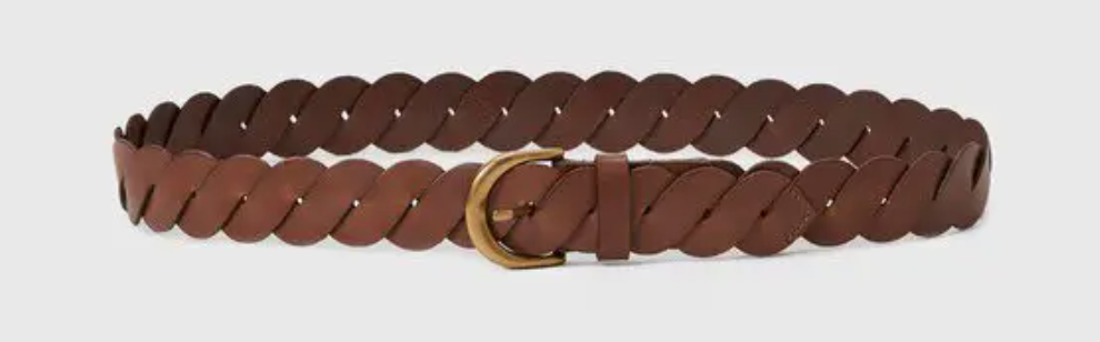 The PAIGE Una Belt is crafted from whiskey twisted smooth leather. This waist belt features a rounded brass metal buckle closure and twisted straps, allowing adjustable sizing.
