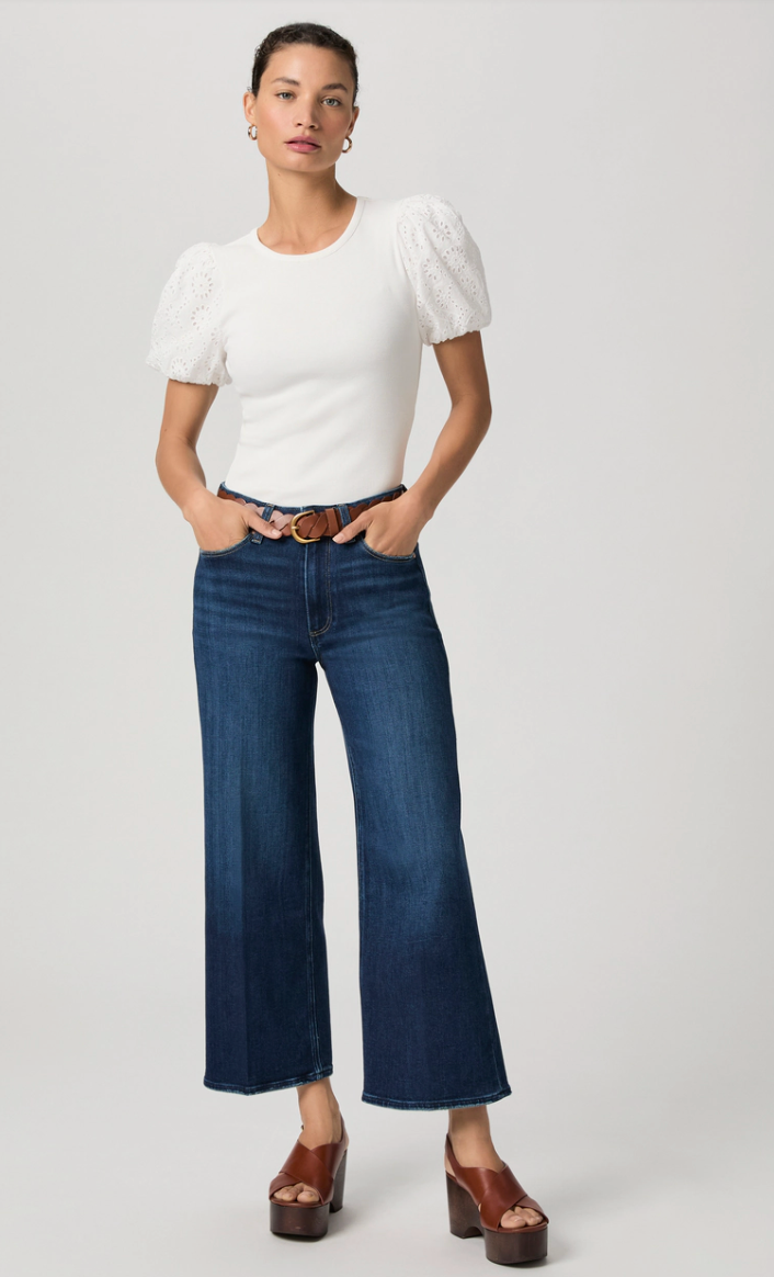 Anessa is the high-rise wide leg with a slightly relaxed fit and an ankle length silhouette. Cut from TRANSCEND VINTAGE denim in a dark wash with subtle aged details, this pair combines the signature comfort of Transcend with rich denim character for a lived-in look.