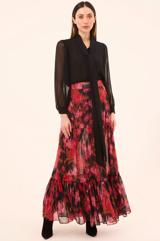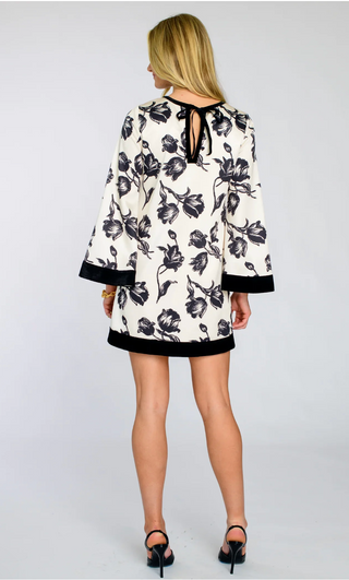 Puff Sleeve Button Front Dress - Black/Gold Jacquard