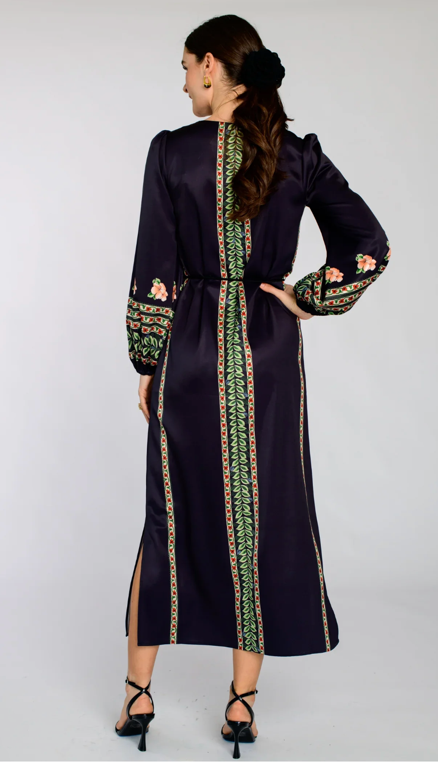 Dawn is a relaxed maxi dress, elevated with a stunning Holiday print, balloon sleeves, and an optional cord belt. She is one of our favorite picks for this time of year, perfect for staying stylish and comfortable throughout the Holiday season.