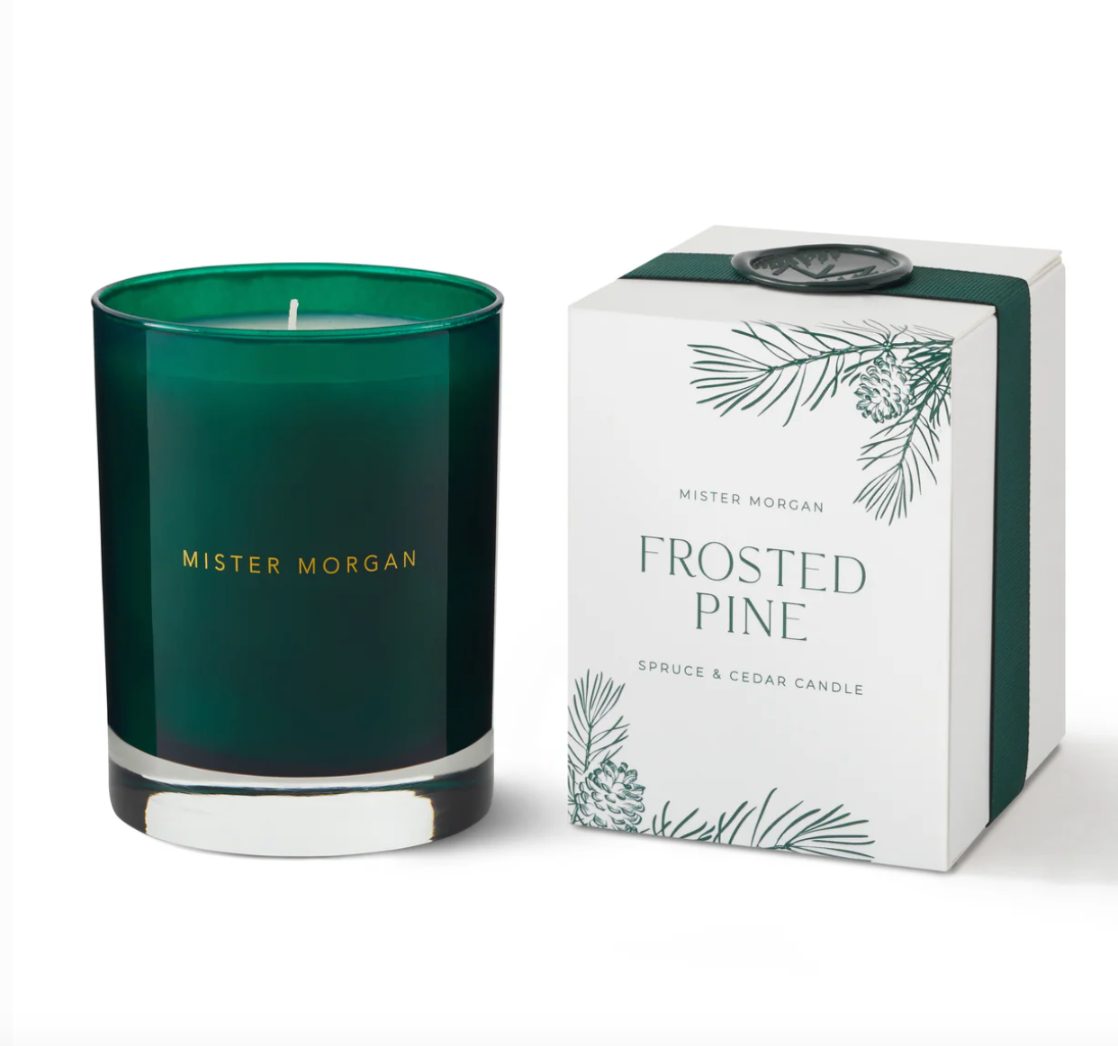 Niven Morgan's Frosted Pine candle is an exhilarating blend of crisp pine needles, fresh cut spruce and cedar.  A walk through an evergreen forest, a holiday tradition, a fond memory.