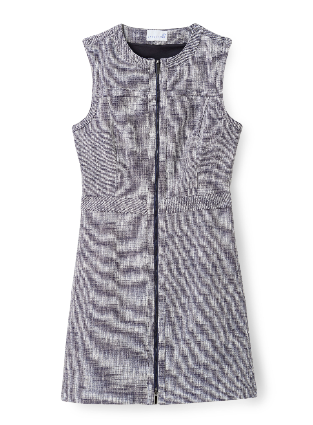 The Jayne dress carries a quiet, modern romance—clean lines and sharp seaming shaping a silhouette that moves effortlessly from day’s brightness into evening’s softer glow.