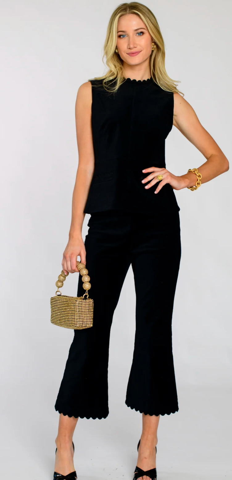 The Jojo pants in black velvet are an elevated basic that will be a wardrobe staple this season. Pair with one of the matching tops or your favorite printed EJ blouse for an easy Holiday ensemble.