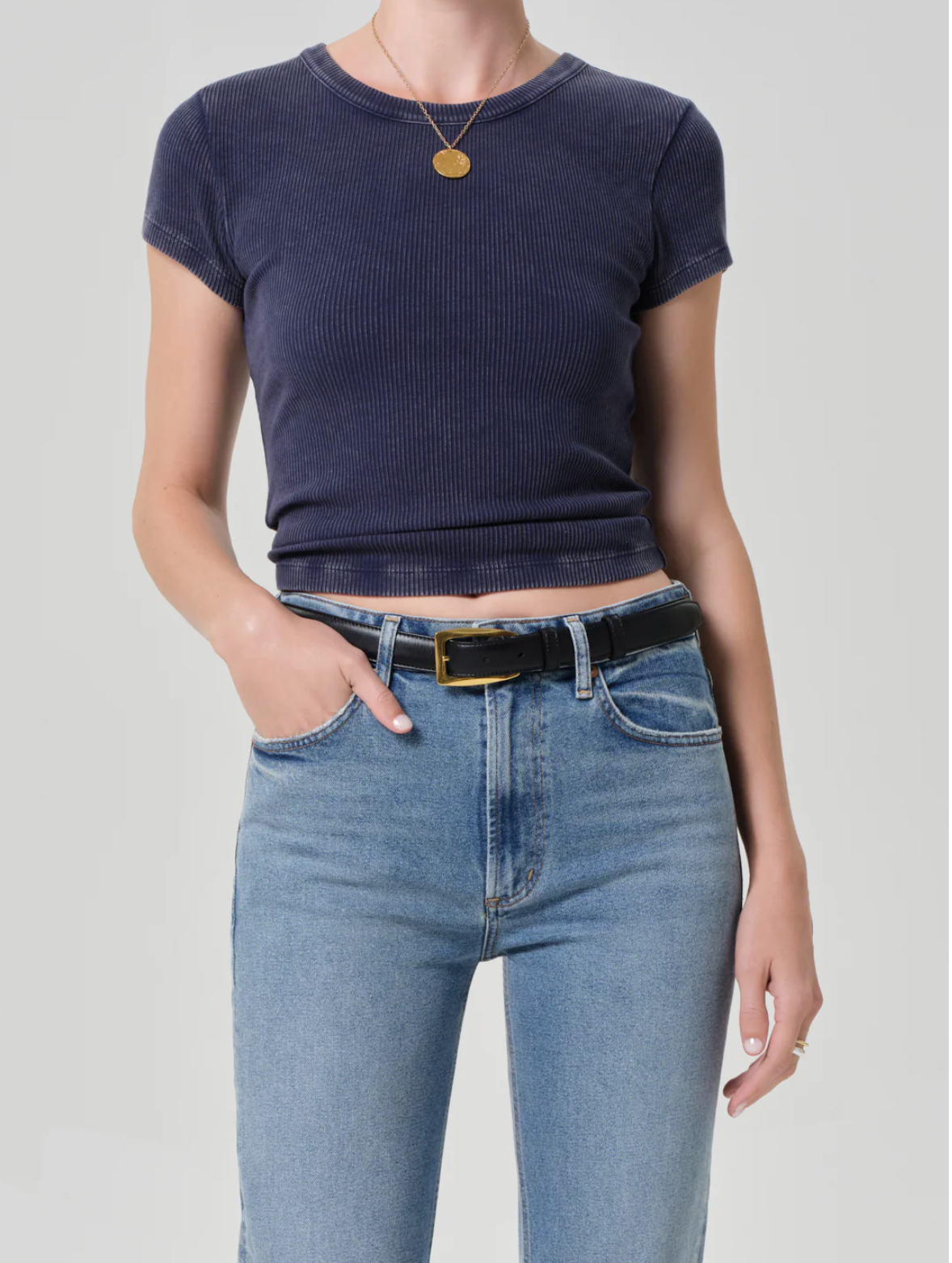 Looks Like: Dark navy mineral dyed short sleeve ribbed tee