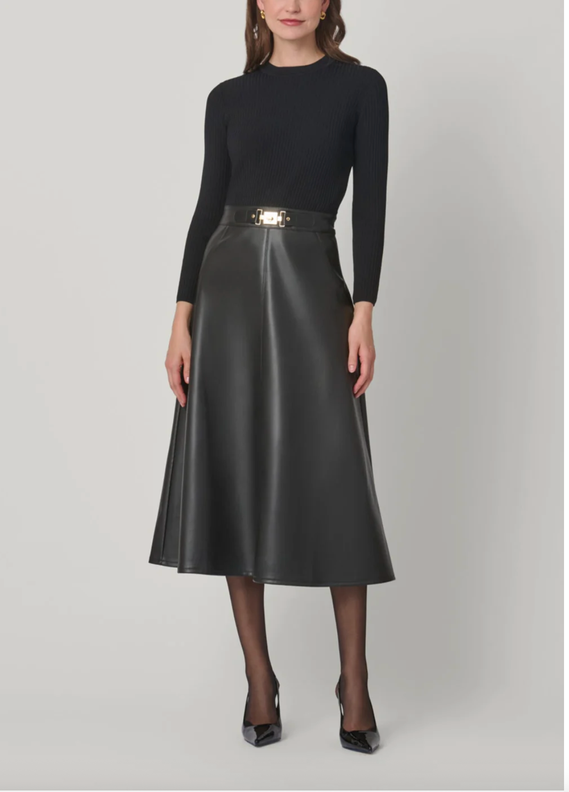 Knit: 63% Viscose, 37% Nylon. Faux Leather: 100% Polyester. Dry clean only.