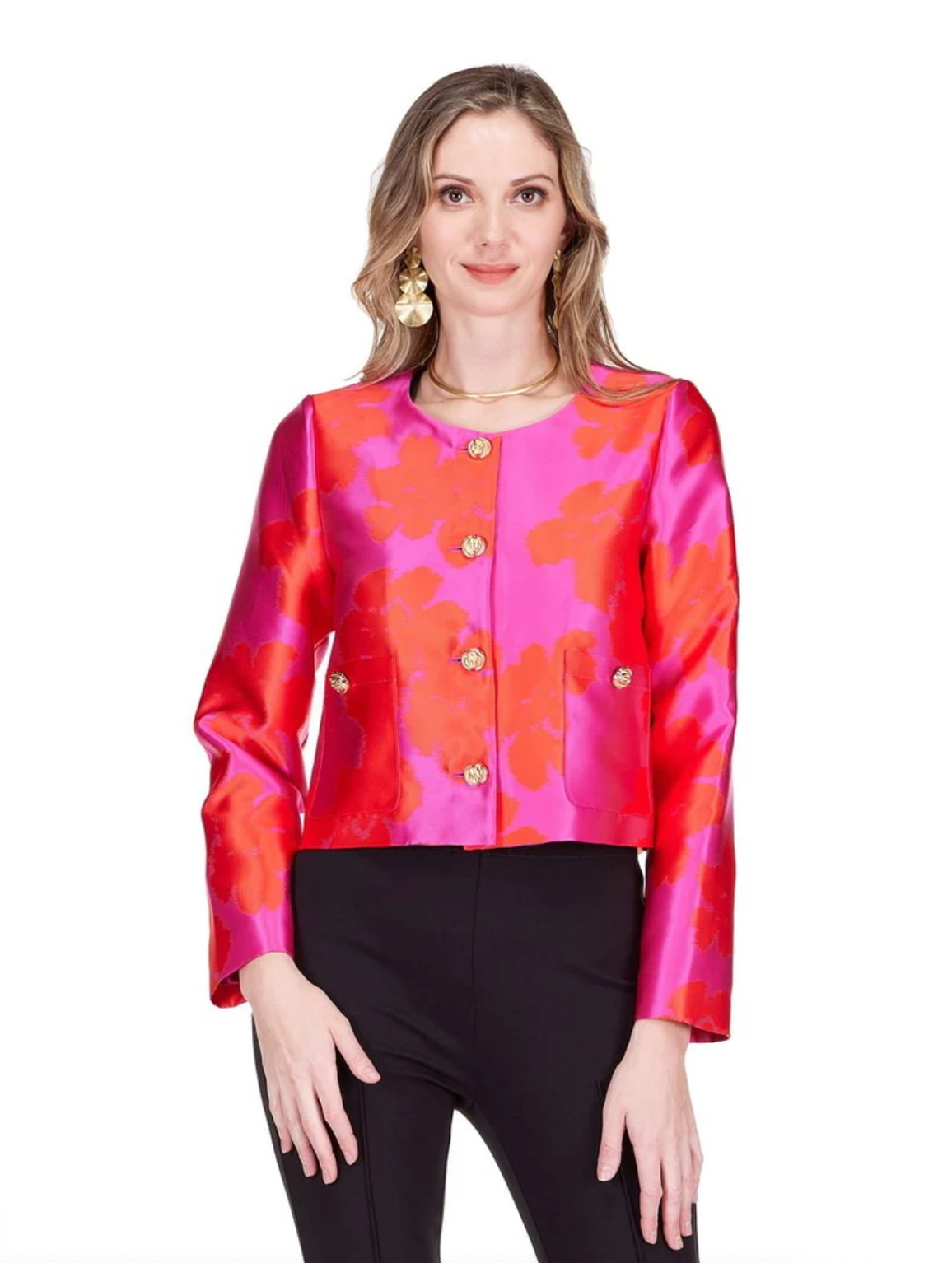 Pocket Buttons Crop Jacket - Hibiscus Brocade