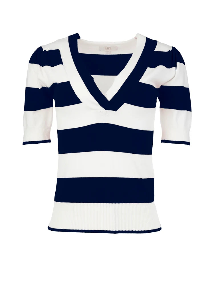 Kut From the Kloth - Yona Striped V-Neck Short Sleeve Sweater