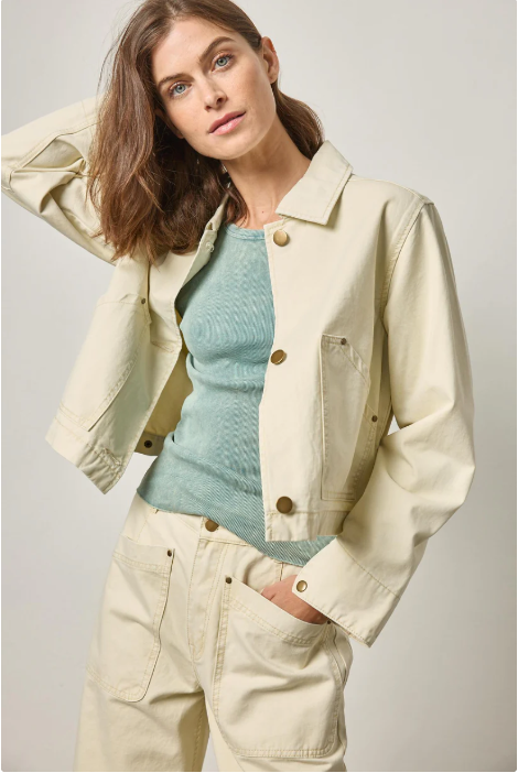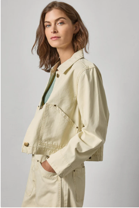 The Twill Utility Jacket is an elevated layer in our Cotton Spring Twill. With a soft brushed finish and slightly heavier weight, this fabric offers the perfect balance of structure and comfort, and becomes even softer with every wear. Designed with a button front, front pockets, and uniquely shaped sleeve openings for added detail, this jacket adds effortless polish to any outfit. Pair it with any of our spring sweaters or Sunwashed Tees, and complete the look with the coordinating bottoms for a tonal, head-to-toe style you'll wear all season long.